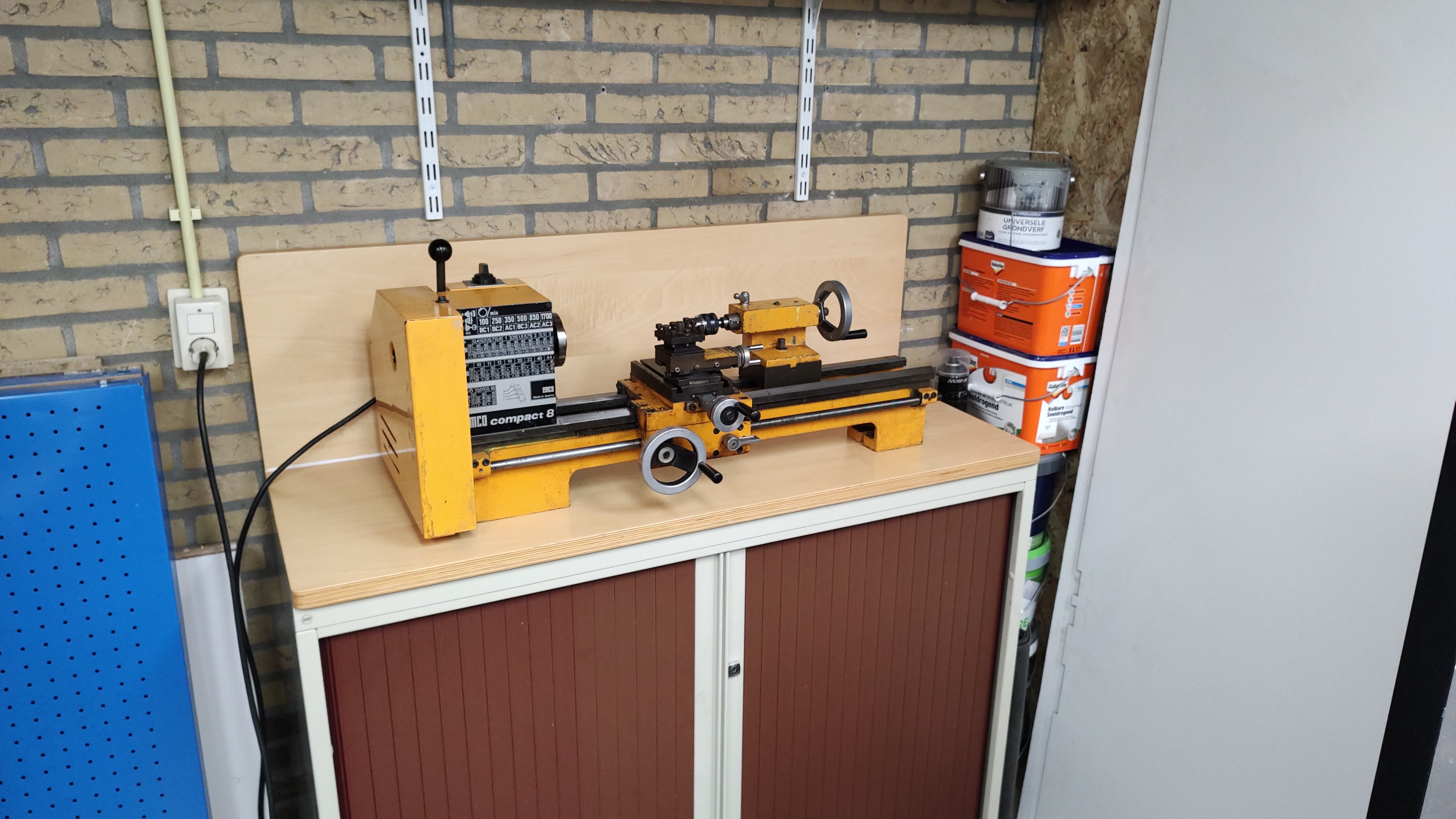 Shortly after the CNC mill the emco compact 8 lathe arrived in my workshop! Now I can make all the things! I have some ideas to upgrade the machine (DRO, electronic lead screw and other attributes). And learn how to use it of course (minor detail).