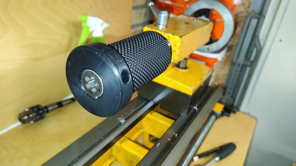 Lathe project 1: a tapping die holder, printed and machined to size on the lathe.